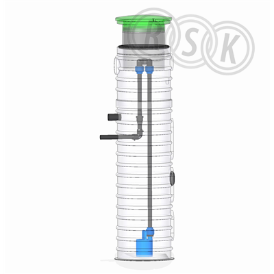 Pumpstation Flygt Compit Drän P med låsbart plastlock. Prisvärd och enkel lösning för bortpumpning av dränerings- och dagvatten. Komplett med Flygt SXM2 dräneringspump med nivåvippa. Stationen är utrustad med snabbkoppling för enkel installation av pump. Rörinredning i PE, utgående ansl. DN 40, inkommande ansl. 110mm. Sump. dia.X höjd, 500mmX2000mm med teleskopjustering 400mm sumpvolym: 110-330 liter. Vikt 45 kg med pump Pump SXM2 / 0,25kW/1-fas, 230V, 1,4A/10m kabel med stickpropp.