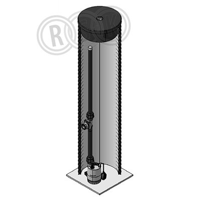 Dräneringsbrunn med pump för regn och gråvatten. Inklusive nivåvippa.