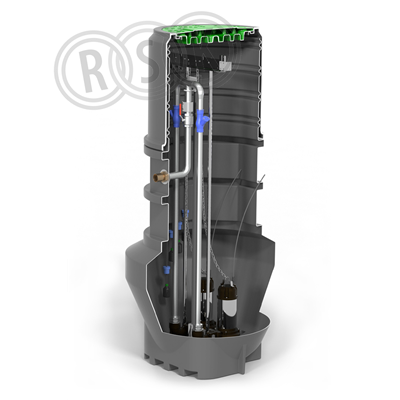 Grundpaket pumpstation PS1200-2 Utlopp invändig gänga 50, CC 1400 mm Inlopp Ø 160 mm, CC 1085 mm alt. 1405 mm (levereras oborrad)