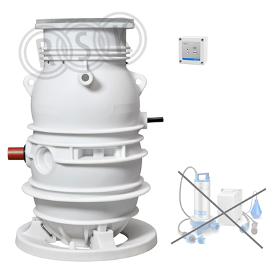 Flygt Compit 901, installationsfärdig prefabricerad pumpstation, utan pump att kompletteras med Flygt pumppaket DXG 25-11 T Plus, avsedd för orensat avloppsvatten (spillvatten). Stationen, som är tillverkad av rotationsformad polyeten (PE), är 1905 mm hög. Max nedgrävningsdjup 1865 mm. Vikt 181 kg. Sumpvolym 320 liter. Inlopp Ø 2X160/2X110mm. 1st 110mm gummitätning medföljer, utlopp PE40 med plaströrskoppling för PE50 (PE40/PE50). Hålsåg med dimension min 102mm/max 108mm behövs för medföljande gumminippel för inloppsrörsanslutning d110. Skall d160mm inloppsrör anslutas så beställes gumminippel 850863 separat (fordrar hålsåg min 152mm/max 158mm). Stationen är utrustad med: - Rörgalleri, kopplingar, avstängningsventil och kulbackventil i PPA. - Flygt ATU-001 larmenhet - Lock av betong med lyfthandtag som klarar gång- & cykeltrafik.