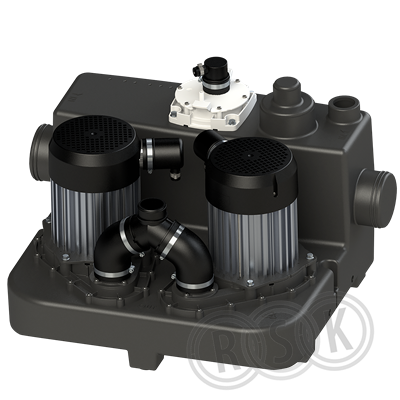Pumpstation med dubbla grinders/pumpar/motorer för avloppsvatten. Rekommenderat tillbehör: Trådbunden larm, Rsk:5830136 Sanicom 2 larmbox