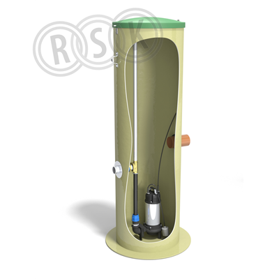 Pumpstation med skärande 1-fas pump GC-07A med integrerad vippa för start/stopp.