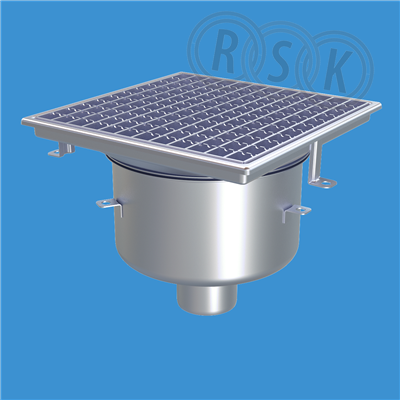FURO 105 för bl.a. storkök och industri med lättare belastningar. Av syrafast rostfritt stål med bottenutlopp Ø75 mm, fyrkantöverdel med galler L15 dim. 273x273 mm. För Klinkergolv K3, utan tätskikt alt. Stålslipat betonggolv. Komplettera ev. med silkorg 7120796.
