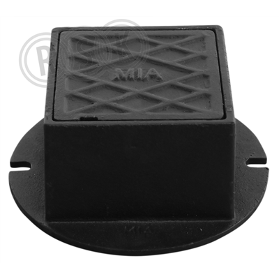 Komplett fyrkantig, 150 lättbetäckning avsedd för 150mm brunn. Lock med låsarmar.