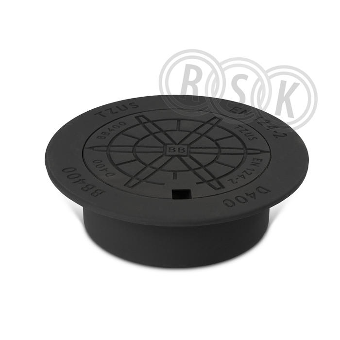 Flytande rund ram och lock för brunn med 400 dagöppning. Ett spetthål, lås. Segjärn. Säljs komplett med lock och ram.