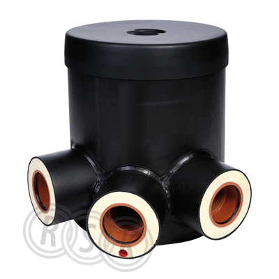 Isovarm Tilsynsbrunn dubbelavgrenad 45° 110/200 mm PP med tomrör för 400 mm stigarrör, inkl. muffskarv