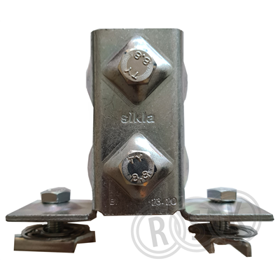 Vinkelanslutning med fjädermutter för byggnation av racksystem av montageskena 41 i 90 graders vinklar. Används i par.