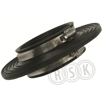 Vatten- och radontätning i EPDM med klämmor i rostfritt syrafast stål. Lång fläns för tillförlitligt grepp i omgivande betong samt lång livslängd på åtdragsklämmor