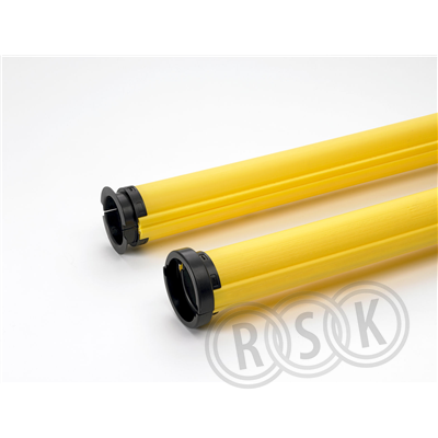 Avvinklingsbara delbara rör 110/100 av gul PEH med snäppkoppling och muff. Längd 0,4m/rör, levereras i pallar. Klass SRN.