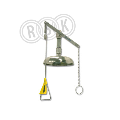 Krusman 3833 nöddusch . [Detta RSK-nummer var vid revideringen av databasen 2010 utgånget från marknaden och därför visas endast ursprunglig information.] Nöddusch, takmodell i syrafast stål SS 2343. Duschsil av syrafast stål SS 2343. Kulventil, ej återgående, manövrerad med dragstång samt draghandtag för krypande person. Monteringshöjd över golv ca 2230 mm. Tilledning dimensioneras för minimum flöde 200 l/min vid 2,4 bar tryck. Motsvarande nöddusch takmonterad i galvaniserade stålrör Krusman RSK 821 3814. Teknisk information Flöde: 150-200 l/min Ansl inv: DN 25 Bredd: 252 mm Höjd: 720 mm Djup: 245 mm