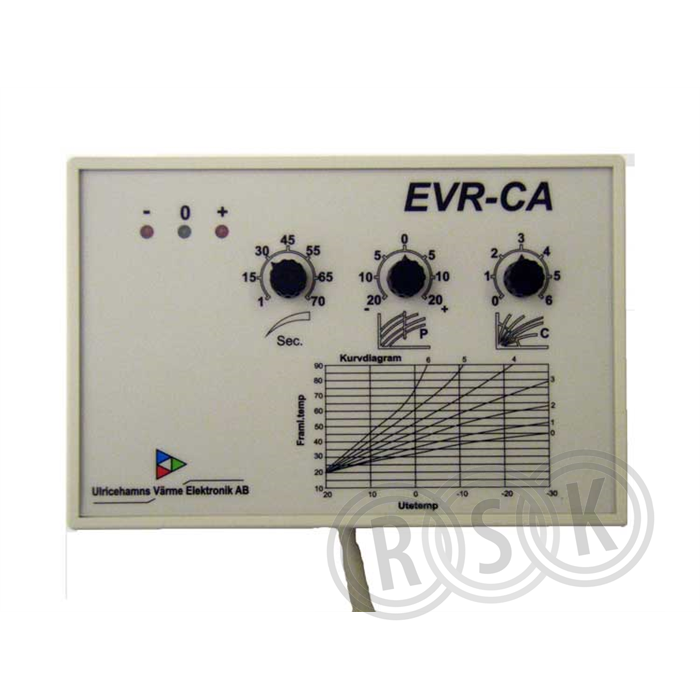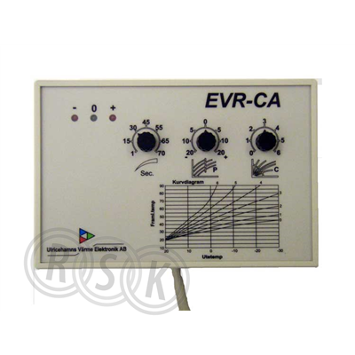 EVR-CA/VRG Reglersystem för vattenburen värme med anslutning till plint i kopplingsbox. Systemet innehåller reglercentral,ställdon,framledningsgivare och utegivare. Till systemet kan anslutas rumstermostat för optimal energibesparing.