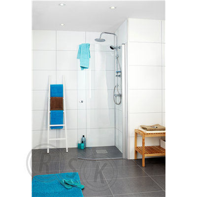 Duschvägg i naturanodiserad aluminium. Lyftgångjärnen gör att du kan öppna dörren både inåt och utåt i 90° vinkel och den kan därför enkelt fällas in mot väggen när den inte används. Kan monteras antingen höger- eller vänsterhängd, eller med en duschvägg på två sidor och då som komplett duschhörna. Ej avsedd som nischlösning. Magnetlist tätar mellan dörrarna i stängt läge. Har du utanpåliggande rör finns det plats för genomföring i befintlig profil.