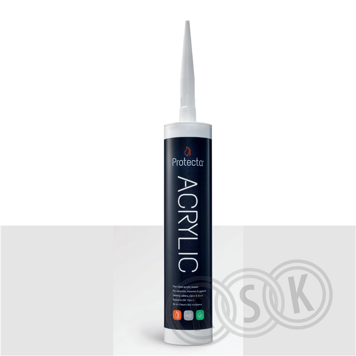 Brandbeständig värmeexpanderande akrylmassa som används för att förhindra spridning av ljud, brand och rök genom fogar och öppningar i ljud- och brandklassificerade väggar och plan samt runt tekniska genomföringar. Protecta FR Akryl bildar en robust och varaktig brandtätning, som också är lite elastisk.