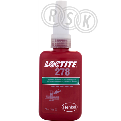 LOCTITE 278 är en grön, medelviskös, metakrylatbaserad gänglåsning med hög styrka. Fixeringstid på stål 20 minuter, på mässing 20 minuter och på rostfritt stål 60 min. Idealisk för applikationer där migration av limmet måste förhindras. Klarar lätt förorening av industrioljor Hög temperaturbeständighet.