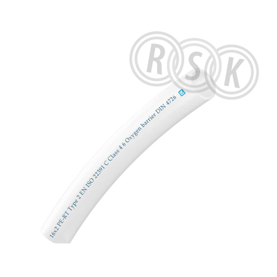 PE-RT rör med syrediffusionsspärr för golvvärmesystem. Max drifttryck 6 bar. Max kontinuerlig drifttemperatur 60 ºC (kortvarig belastning 70 ºC).