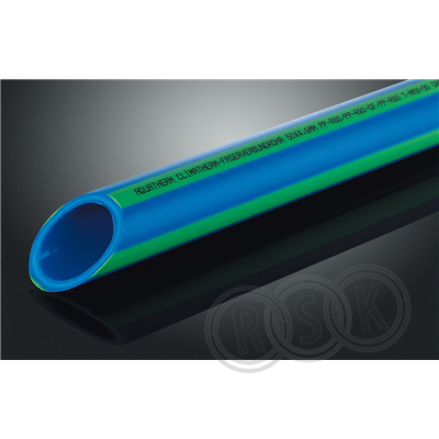 Climatherm Blue Pipe är glasfiberförstärkta PP-R rör som används främst på kyla, till tryckluft och tekniska installationer. Högsta tillåtna kontinuerliga difttemperatur är 90 ° Celcius . Lägsta tillåtna drifttemperatur är -20 ° Celcius. Rören ska hanteras varsamt vid temperaturer under 5 ° Celcius. Rörlängd 4 meter. SDR 11