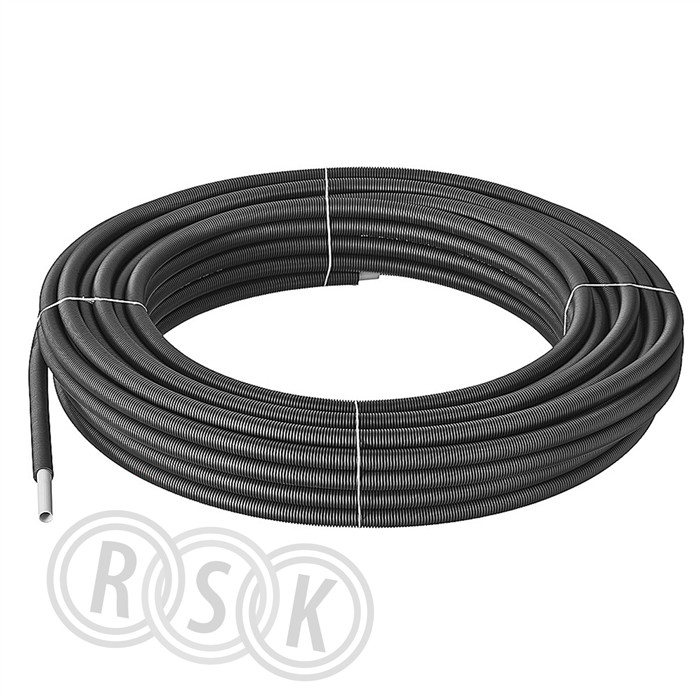 Retherm PEX kombirör med svart ytterrör och diffusionsspärr. Att användas på tappvatten och värme. Material PEX-A och PE. PN10, max temp 95 ° C. 50 meters rulle.