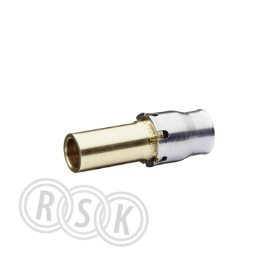 Instickskoppling till alupexrör för tappvatten och värmeinstallationer, med indikering för kontroll av instick till botten, av varmpressad avzinkningshärdig mässing CW617, presskappa av rostfritt stål, o-ring av EPDM, arbetstemperatur 110°c vid 10 bar