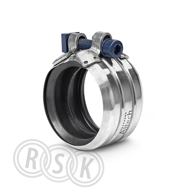 Altech koppling för mufflösa avloppssystem i gjutjärn. Rostfritt stål med EPDM-tätning och 1 eller 2 bult. Tillverkad och godkänd enligt EN877, Klass B. Krage: AISI 430 Ti. Klämenhet: AISI 304 Ti. Mutter: AISI 304 ytbehandlad stål. Helgängad insexskruv, med M8-gänga