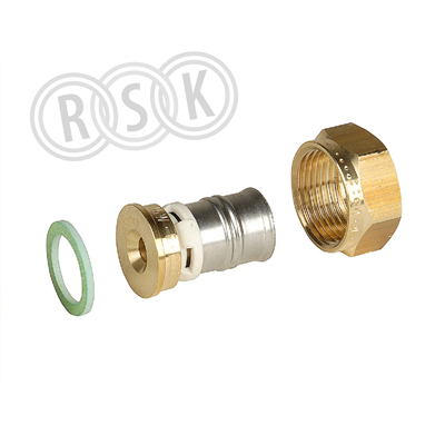 Presskoppling till alupexrör för tappvatten och värmeinstallationer, med läckageindikering av PPSU och varmpressad mässing CW617, presskappa av rostfritt stål, o-ring av EPDM, arbetstemperatur 110°c vid 10 bar