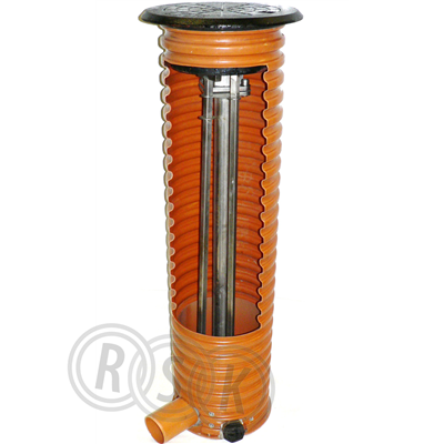 Spolpost i rostfritt stål inbyggd i 315trumma med SP betäckning & teleskoprör. Manuell dräneringsventil som är problemfri. 50 PE anslutning & 110 dränanslutning. Levereras utan utloppskoppling.