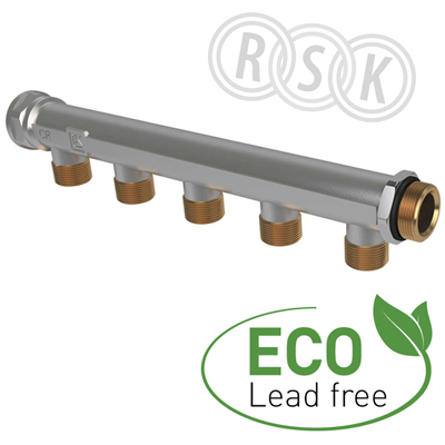 Påbyggnadsbar fördelare för värme- och tappvattensystem. Monteras på vägg eller tak i LK Fördelarkonsol eller i LK Fördelarskåp UNI. Tillverkad av blyfri avzinkningshärdig mässing, förnicklad. Ersätts med ny modell och nya artikelnummer under 2026. Fördelare UNI 1-G15, 2-G15, 3-G15, 4-G15 och 5-G15 har anslutning G20 (inv- och utv-gänga EuroCone) för matningsledning och anslutning G15 c/c 50 mm utv gg Conex/EuroCone på avsticken. Samtliga typer har o-ringstätning på den utvändiga G20 sidan för matningsledning vilket underlättar ihopmontering av 2 st fördelare utan ytterligare tätning. Rör X16, A16, X20 samt A20 kan anslutas på avsticken med LK PressPex Pressanslutningskoppling.
