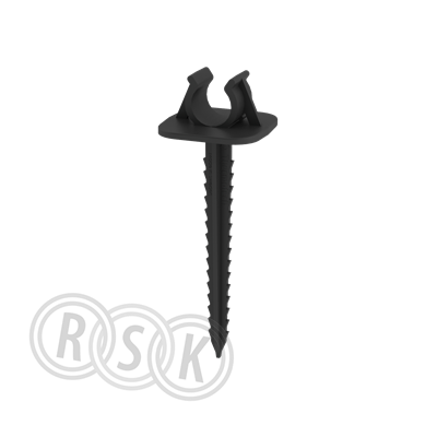 Rörhållare i plast för infästning av golvvärmerör mot cellplast som är minst 100 mm tjock. Plasten i denna produkt är till 50% återvunnen av spill från skyddsrören i rör-i-rörtillverkning. Längd: 95 mm. Materialåtgång: 5 st/m2 (bara rörhållare), 1 st/m2 (som komplement till rörhållarskenor)