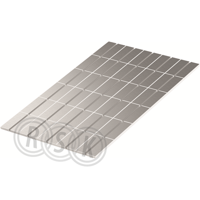 Förlimmad 0,25 mm aluminiumplåt. För 12 mm golvvärmerör, bygghöjd 16 mm. Mått: 1200 x 750 x 16 mm (LxBxH) Tekniska egenskaper: Material: EPS 035 DEO Tryckklass: S240 Värmeledningsförmåga: 0.035 W/mK Värmeresistans: 0.40 m²K/W c/c avstånd rör: 150 mm Mått: 1200 x 750 x 16 mm Materialåtgång: 1,1 st / m² (exkl. vändyta)