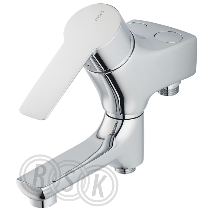 Vägghängd ettgreppsblandare 40 c/c, mjukstängande med keramisk tätning.Inbyggd omställningsbar flödesbegränsning och temperaturspärr. Tillverkade i 4MS-godkänd mässingslegering.