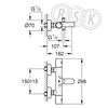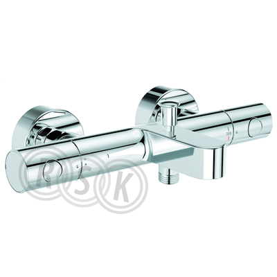 Grohtherm 1000 Cosmopolitan M termostatblandare (150 cc) för badkar och dusch, DN 15 med energiklass A. Termostatblandaren är avsedd för väggmontage och är utrustad med GROHE TurboStat kompakt insats med vaxbaserad keramisk kropp. GROHE SafeStop vid 38 °C och GROHE SafeStop Plus vid 43 ˚C som inkluderat tillval minskar risken för skållning. Utöver det är termostatblandaren försedd med GROHE MetalGrip ergonomiskt formade handtag, inbyggd blandningspärr, automatisk omkastning mellan badkar och dusch, GROHE EcoJoy vattenbesparande teknologi, keramiskt överstycke 1/2", duschanslutning 1/2" nedåt, inbyggd backventil, inloppssil, S-anslutningar och täckbricka i metall. Perlatorn är byggd för verktygsfritt utbyte och det lägsta rekommenderade vattentryckt är 1,0 bar.