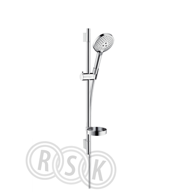 • består av: handdusch, duschstång, duschslang, glidfäste, tvålkopp • duschhuvud storlek: 125 mm • stråltyp: Rain, RainAir, Whirl • bekväm stråltypsomställning via Select-knapp • 90° justerbar handduschhållare, svänger till vänster och höger, upp och ner • maximal flödesmängd vid 3 bar: 15 l/min • väggfästen av plast • stångens form: rund • rörlängd: 718 mm • duschstång diamter: 22 mm • borravstånd: 625 mm • kulled förhindrar att slangen vrider sig