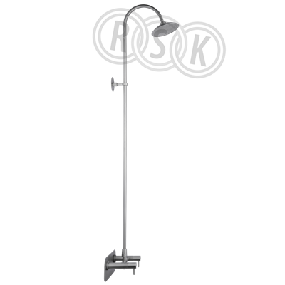 EQI väggmonterad utomhusdusch, kallt/varmt vatten, synlig duschstång, 15 mm anslutning, väggtjocklek 150–350 mm, rostfri