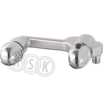 Tryckbalanserad termostatblandare med typgodkända backventiler och distansringar. För montering i duschkabin.