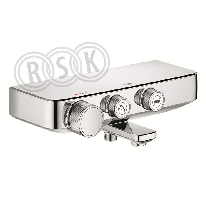 Grohtherm SmartControl Termostatblandare för dusch, DN 15 Väggmontage GROHE Cooltouch ingen risk för brännskador GROHE StarLight kromyta GROHE SafeStop vid 38° C GROHE SafeStop Plus valfri extra temperaturbegränsare vid 43°C inkluderad GROHE TurboStat kompakt insats med vaxbaserad keramisk kropp SmartControl tryck för PÅ-AV, vrid för flödesreglering från EcoJoy till fullt flöde integrated GROHE EasyReach shower tray Duschanslutning 1/2" nedåt bath spout with mousseur Inbyggd backventil och inloppssil Backventil mot tillbakaflöde