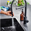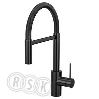 Denna köksblandare kombinerar en hög, böjd design med ett neddragbart munstycke med dubbelspray som når hela diskhon. Strålsamlaren ger ett mjukt flöde och hjälper dig att spara vatten.
