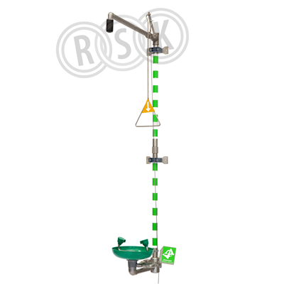 Kombinerad kropps- och ögon/ansiktsdusch för montage på vägg. Duschmunstycke i acetalplast, uppsamlingsskål i ABS plast. Inbyggd tryck- och flödesreglering som garanterar korrekt spolbild och flöde. Levereras komplett med dragförlängare för aktivering av krypande/ liggande person, efterlysande ögon/nödduschskylt, kontrollkort, måttritning samt skötsel och driftinstruktion.