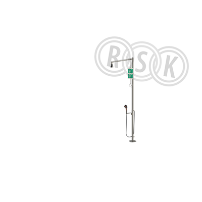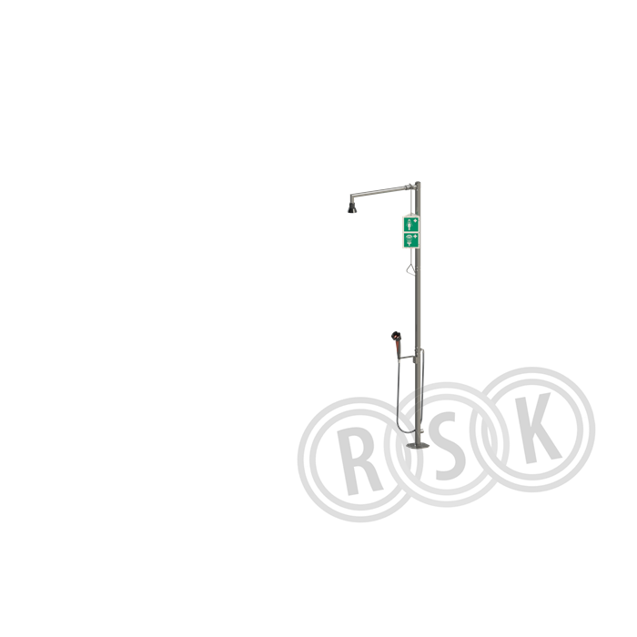 Broen-Lab Syrafast rostfri kombidusch med handhållen ögondusch för golvmontage & självdränerande duschmunstycke. I syrafast rostfritt stål 316L. arbetstryck: 1,5 bar.