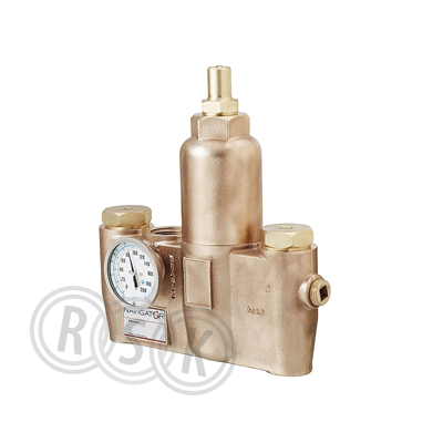 GIA Premix Navigator är speciellt utvecklad för temperering av vatten till nödduschar. Navigator är en skyddsblandare med hög blandningskapacitet. Max arbetstemperatur: 82°C. Max arbetstryck: 8,6 bar Flöde vid 3 bars tryck: ca 120 l/min Nödduschens vattentemperatur kan regleras inom temperaturområdet +18°C till +35°C. Inställning av önskad temperatur sker med en reglerskruv. Vid leverans är blandaren injusterad på 29°C. Skulle kallvattentillförseln av någon anledning utebli, stängs automatiskt varmvattentillförseln. Däremot om det omvända sker fortsätter flödet av tillgängligt kallvatten i oförminskad mängd. • Uppfyller ANSI Z358.1-2009 • Backventiler och smutsfilter på Inlopp • Inbyggd "kallvatten-bypass" • Termometer