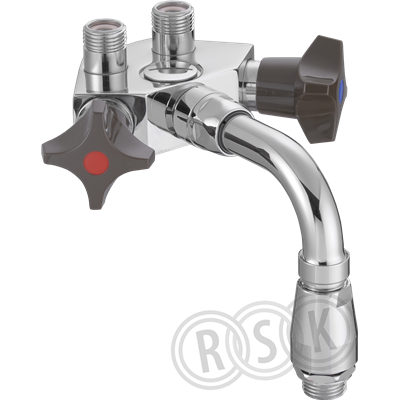 Utan slangkoppling Vändbar för röranslutning nedåt; skifta rattar och ändra slanganslutning Återströmningsskydd enligt EU-standard SS-EN 1717