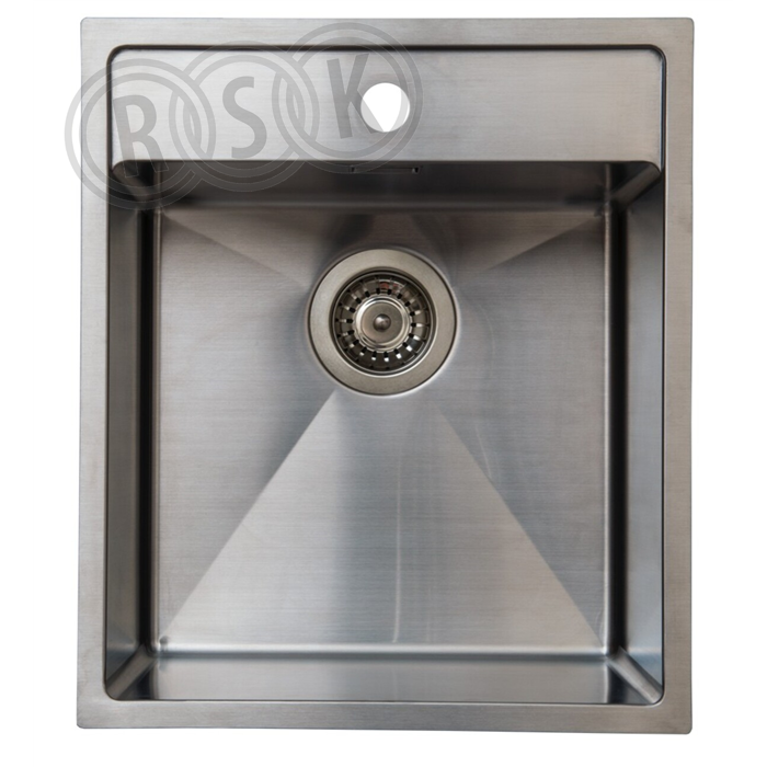 Baltic fyrkantig diskbänk med plats för armatur i bakkant. För nedfällning och planlimning. Levereras med manuell korgventil, bräddavlopp och vattenlås. Med klammer. Yttermått: 430x500 mm Disklåda: 390x380 mm
