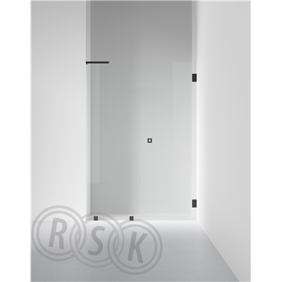 En fast vägg och en dörr i 8 mm glas. Måttanpassas inom angivna intervall. Anpassas enkelt efter just dina mått.