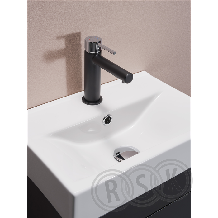 Kompakt tvättställ med överfyllnadsskydd i porslin.