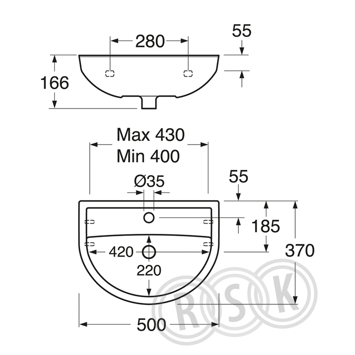 GBG Nordic³ tvättställ 410050 bult- eller konsolmontage, 500 x 370 mm. Med blandarhål och bräddavlopp.