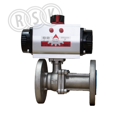 PA 192 är en tvådelad kulventil av syrafast stål med fullt genomlopp. Flänsad enligt Din 2543. Med pneumatiskt enkelverkande vriddon.