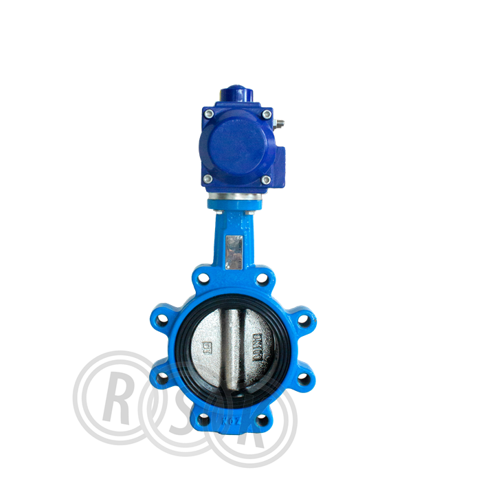 Vridspjällsventil PA 208 med EPDM-foder, LUG modell med gängad anslutning, Hög hals anpassad för isolering med monterat enkelverkande manöverdon.