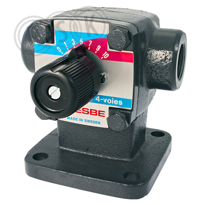 4-vägs shuntventil i gjutjärn med invändig gänganslutning avsedd för fabriksmontage på värmepannor. Temperaturområde -10 till 110°C.