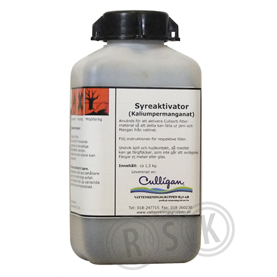Används för att aktivera Cullsorb och ev.manganese greensand, filtermaterial så att det kan fälla ut järn och mangan från vatten. Lätt lösligt. förp. om 1,5kg