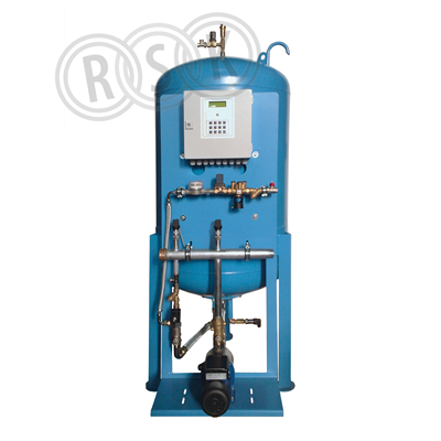 Tryckhållningsstation med tryckhållningskärl, automatisk påfyllning och inbyggd avgasning. Anpassad för värmesystem samt kylsystem med upp till 50% glykolblandning eller 50% etanolblandning.
