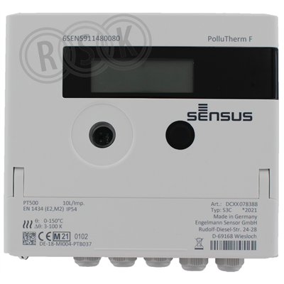 Sensus integreringsverk för värme/köld-mätning, PolluTherm F, PT500, MWh, battery, 1 liter/puls. För Sensus flödesgivare PolluFlow 90, AN-130, MeiStream eller WPD. Pulsingång 1 liter/puls. Batteridriven. Ansluts till två tempgivare PT500, välj mellan tempgivare 5,2x45mm, 6,0x100mm eller 6,0x150mm. Båda tempgivare monteras i dykrör. För komplett mätning krävs Sensus flödesgivare, temperaturgivare och dykrör, som köps separat.