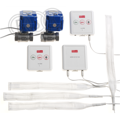 Läckagebrytare Lägenhet komplett fungerar som en säkring för vattensystemet, läckagebrytare. Stänger automatiskt av vattnet vid indikering av vatten.
